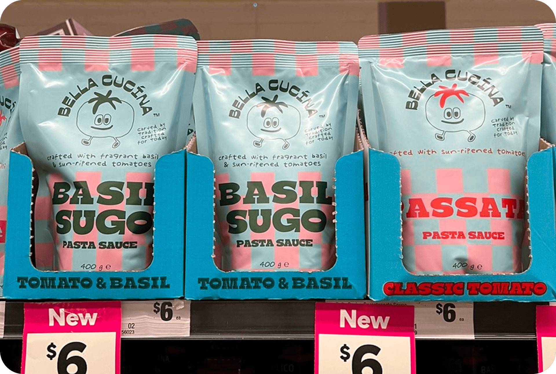 I spoke to the founders of Bella Cucina when they were early in their packaging development. I was embarrassed to admit I didn’t know what “arrabbiata” meant and assumed that a good chunk of Aussies wouldn’t either. Even though the flavour profiles of each sauce were explained in small print on pack, the founders decided to reiterate it simply and boldly on the shipper carton.