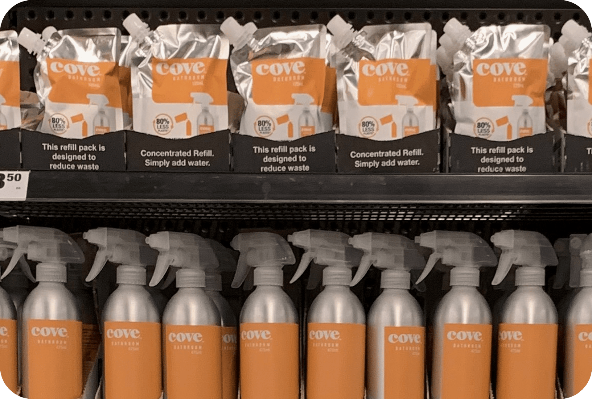 It’s often a lot easier to whack a new message on a shipper carton than it is to redesign your pack entirely. When we launched these refills, we put out a message about the benefit “reducing waste” but completely overlooked the fact that no one knows what the hell a refill is. With insane MOQ’s on our pouches, we couldn’t update our artwork quickly but we subbed out messaging on the carton to help close the gap.